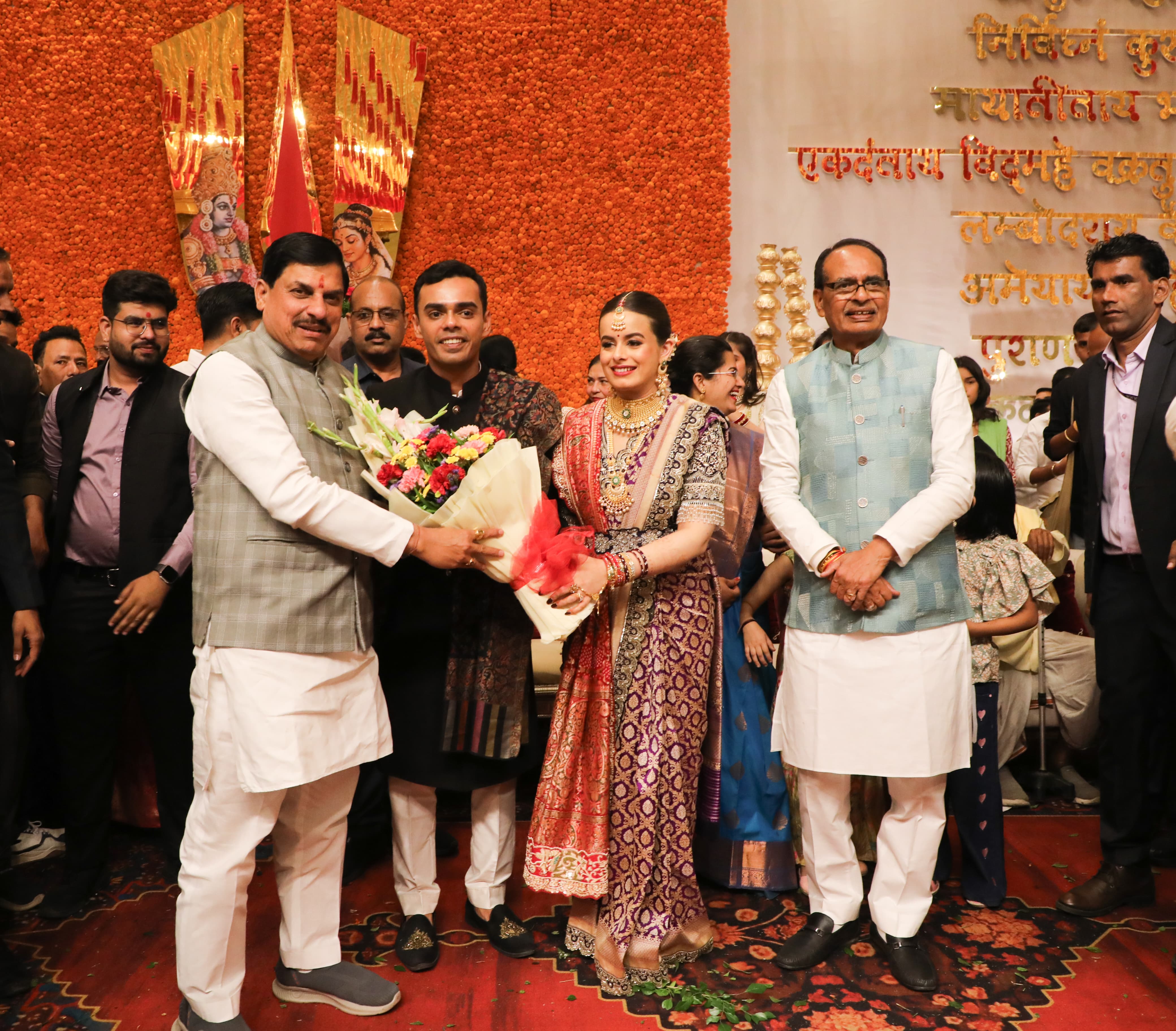 मुख्यमंत्री डॉ.मोहन यादव ने केंद्रीय मंत्री श्री शिवराज सिंह चौहान के सुपुत्र कार्तिकेय के विवाहोपलक्ष् पर आयोजित समारोह में वर-वधु को आशीर्वाद दिया।