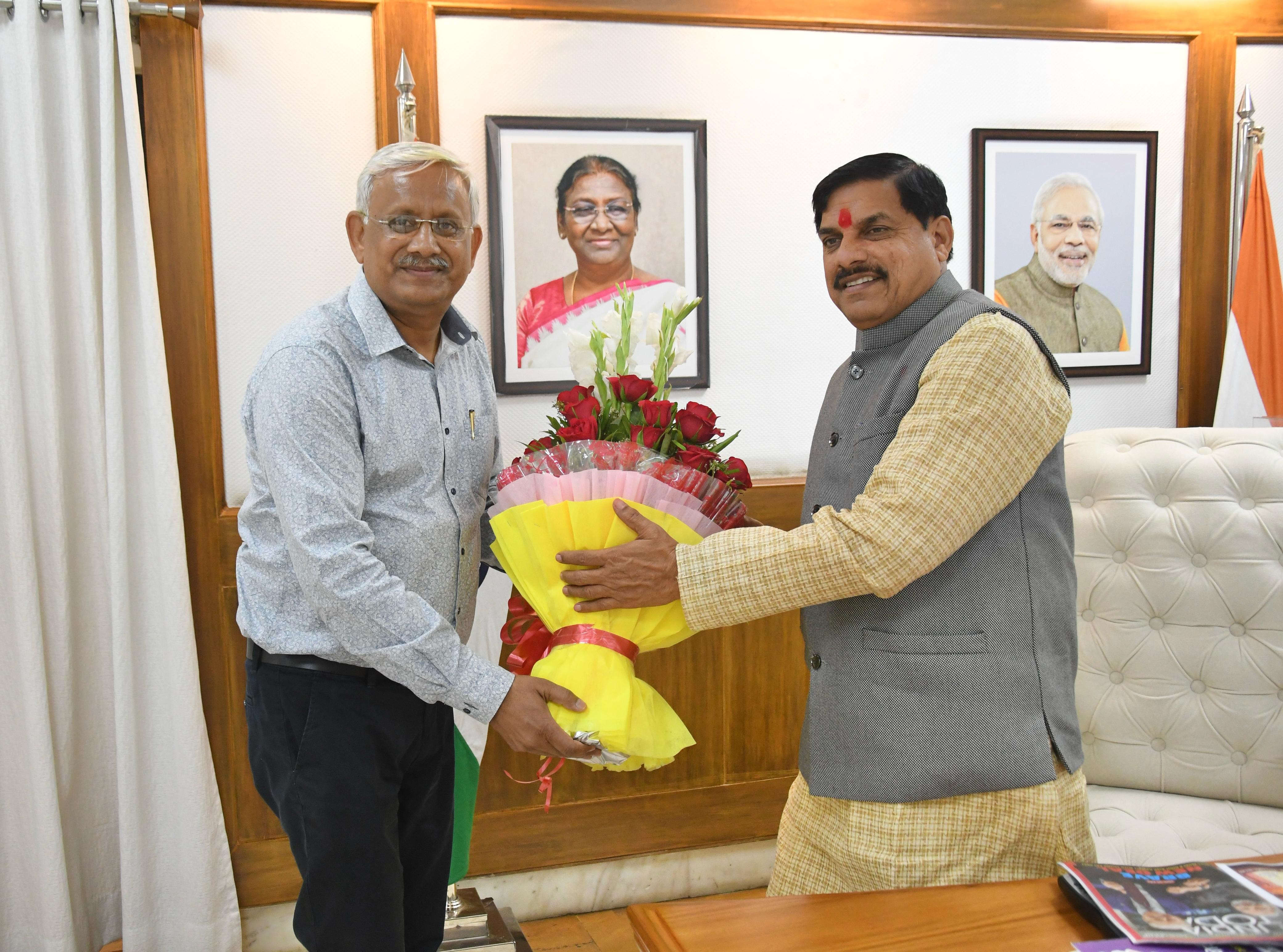 मुख्यमंत्री डॉ. मोहन यादव से देवी अहिल्या विश्वविद्यालय इंदौर के कुलगुरू डॉ. राकेश सिंघई ने मुख्यमंत्री निवास में भेंट की।