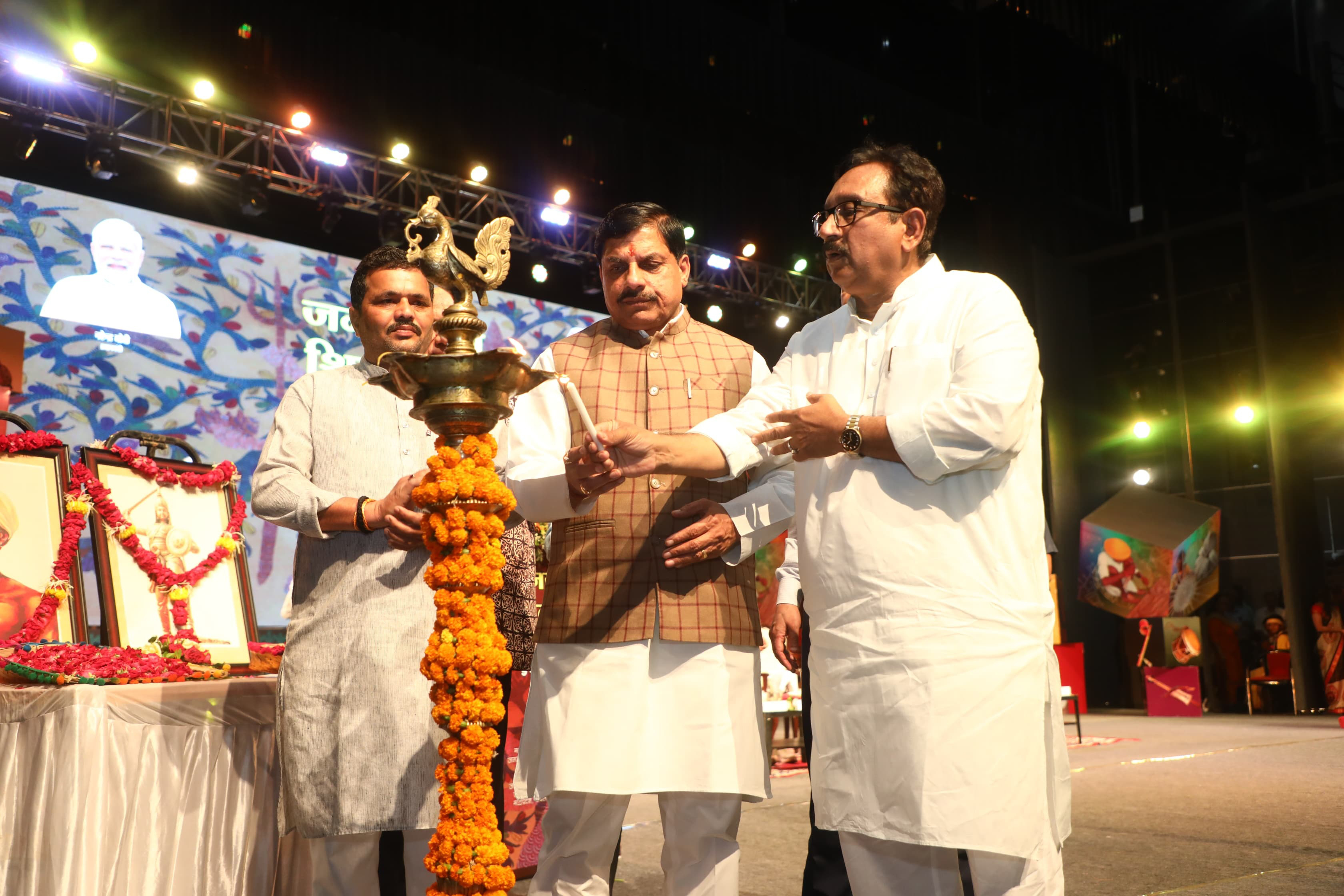 मुख्यमंत्री डॉ. मोहन यादव ने जनजातीय शिल्पग्राम महोत्सव का दीप प्रज्ज्वलित कर शुभारंभ किया।