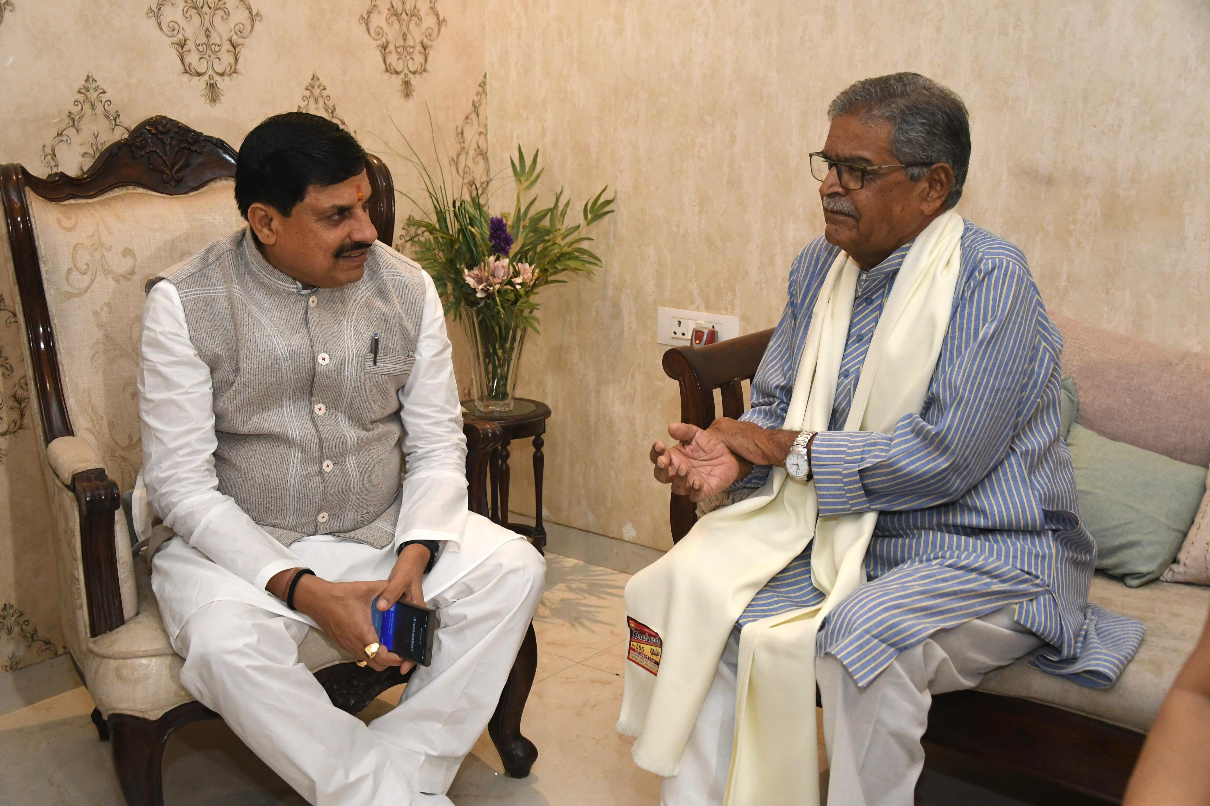 मुख्यमंत्री डॉ. मोहन यादव ने शनिवार को पूर्व मंत्री डॉ. गौरी शंकर शेजवार के अरेरा कॉलोनी स्थित निवास पर पहुंचकर सौजन्य भेंट की।