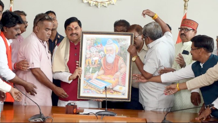 मुख्यमंत्री डॉ. मोहन यादव को मुख्यमंत्री निवास स्थित समत्व भवन में वाल्मीकि समाज जनों ने वाल्मीकि जी का चित्र भेंट किया।