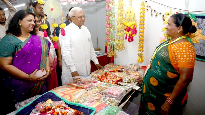 राज्यपाल श्री मंगुभाई पटेल ने नाबार्ड के सह प्रायोजन में ओजस्विनी महोत्सव-2025 में राष्ट्र स्तरीय प्रदर्शनी सह बिक्री में विभिन्न राज्यों के स्वसहायता समूह के उत्पादों का अवलोकन किया।