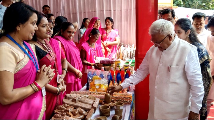 राज्यपाल श्री मंगुभाई पटेल ने कटनी ज़िले के स्लीमनाबाद में आदि कर्मयोगी अभियान के अंतर्गत आदि साथी और आदि सहयोगियों से ग्रामीण जनसंवाद कार्यक्रम में प्रदर्शनी का अवलोकन किया।