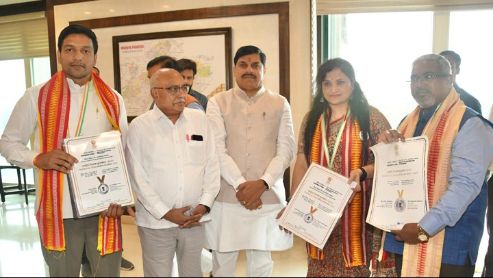 मुख्यमंत्री डॉ. मोहन यादव से मंत्रालय में राष्ट्रपति राष्ट्रीय शिक्षक पुरस्कार-2025 प्राप्त मध्यप्रदेश के तीन शिक्षकों ने सौजन्य भेंट की।