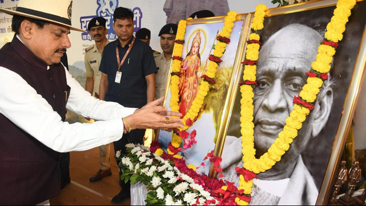 मुख्यमंत्री डॉ. मोहन यादव ने राष्ट्रीय एकता दिवस पर शौर्य स्मारक पर आयोजित कार्यक्रम में भारत माता एवं सरदार वल्लभ भाई पटेल के चित्र पर पुष्प अर्पित किए ।