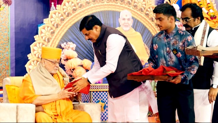 मुख्यमंत्री डॉ. मोहन यादव ने जबलपुर के स्वामीनारायण संस्था द्वारा आयोजित जीवन उत्कर्ष महोत्सव में संतों का अभिवादन किया।