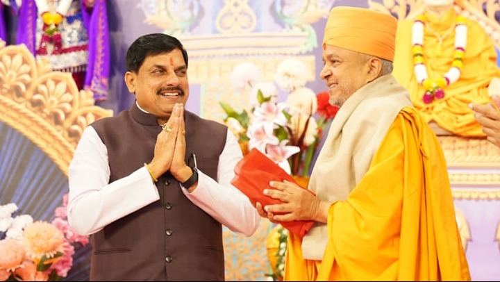 मुख्यमंत्री डॉ. मोहन यादव ने जबलपुर के स्वामीनारायण संस्था द्वारा आयोजित जीवन उत्कर्ष महोत्सव में संतों का अभिवादन किया।