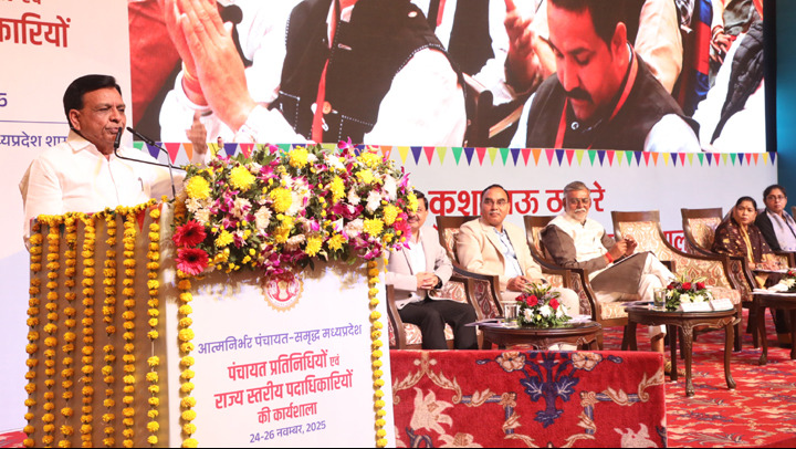 उप मुख्यमंत्री श्री जगदीश देवड़ा ने आत्मनिर्भर पंचायत समृद्ध मध्य प्रदेश पंचायत प्रतिनिधियों एवं राज्य स्तरीय पदाधिकारीयो की कार्यशाला को संबोधित किया।