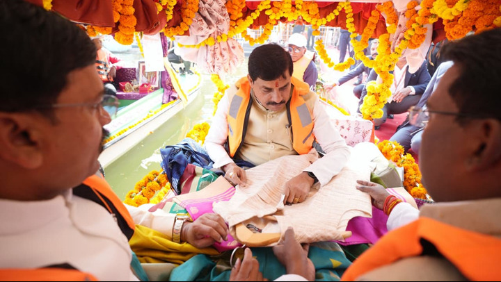मुख्यमंत्री डॉ. मोहन यादव ने भोपाल के बोट क्लब पर शिकारा नाव में वस्त्र खरीदे।