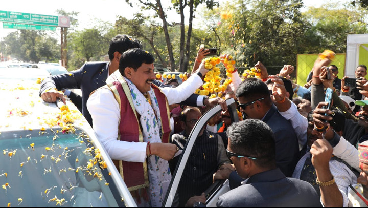 मुख्यमंत्री डॉ. मोहन यादव का नागरिकों ने खजुराहो में स्वागत किया।