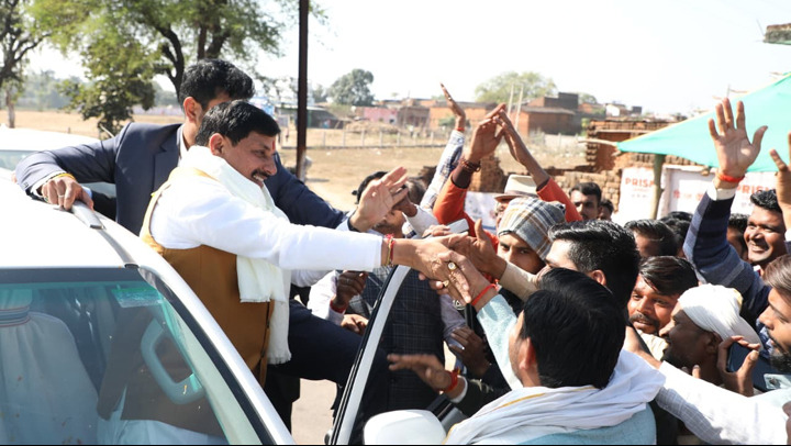 मुख्यमंत्री डॉ. मोहन यादव का नागरिकों ने खजुराहो में स्वागत किया।