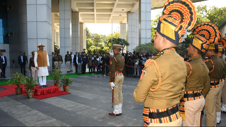 मुख्यमंत्री डॉ मोहन यादव के पुलिस मुख्यालय आगमन पर उन्हें गार्ड आफ आनर दिया गया। मुख्यमंत्री डॉ. यादव ने सलामी गारद का निरीक्षण किया।