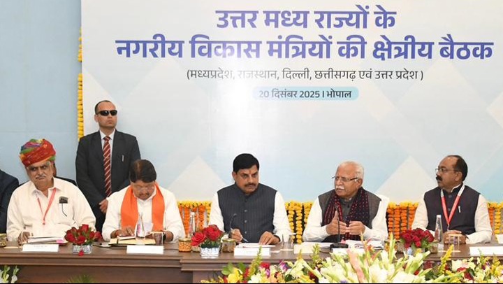 मुख्यमंत्री डॉ. मोहन यादव शनिवार को भोपाल में उत्तर मध्य राज्यों के नगरीय विकास मंत्रियों की क्षेत्रीय बैठक में शामिल हुए।