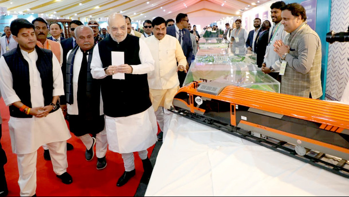 पूर्व प्रधानमंत्री भारत रत्न अटल बिहारी वाजपेई की 101 वीं जन्म जयंती पर गुरुवार को ग्वालियर में आयोजित अभ्युदय मध्यप्रदेश ग्रोथ समिट में केंद्रीय गृहमंत्री श्री अमित शाह ने प्रदर्शनी का अवलोकन किया।