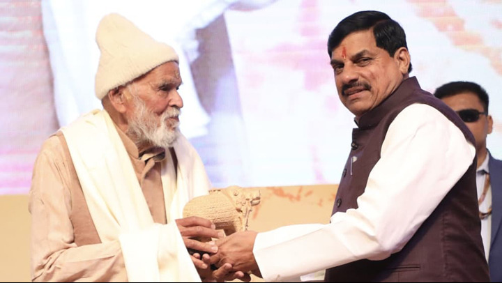 मुख्यमंत्री डॉ. मोहन यादव ने ख्यातनाम पुरातत्वविद डॉ. यशोधर मठपाल को शॉल एवं श्रीफल भेंट कर सम्मानित किया।