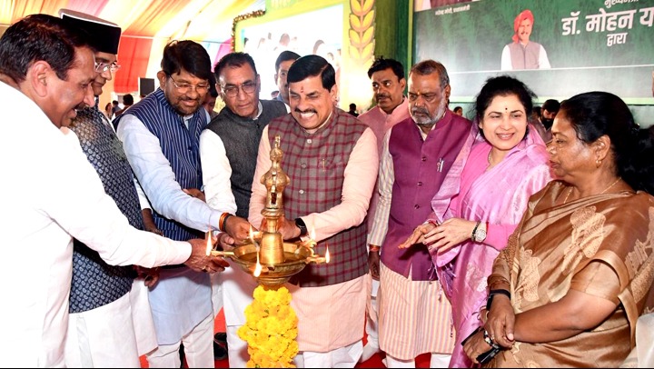 मुख्यमंत्री डॉ. मोहन यादव ने जंबूरी मैदान भोपाल में दीप प्रज्ज्वलित कर "कृषक कल्याण वर्ष-2026" का विधिवत शुभारंभ किया।