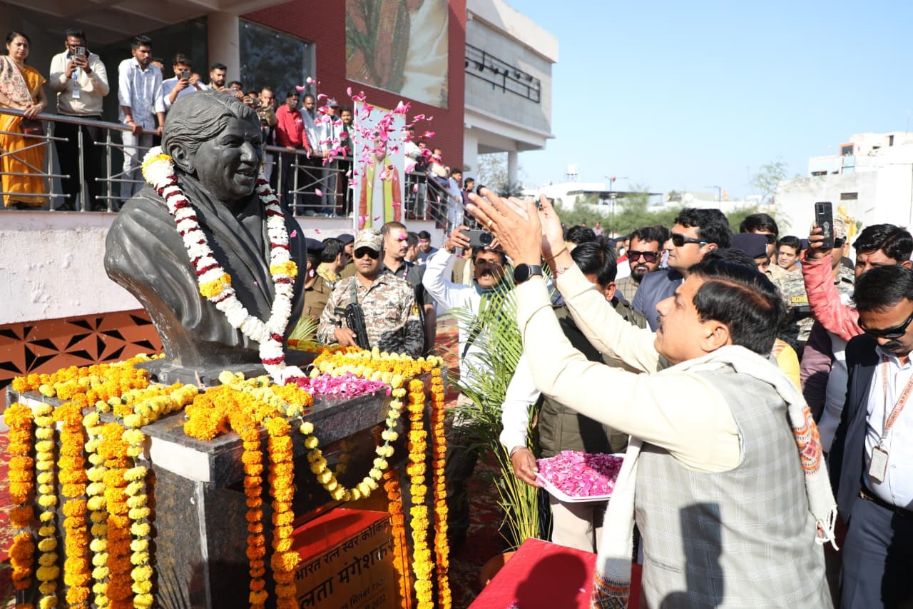 मुख्यमंत्री डॉ. मोहन यादव ने इंदौर के लता मंगेशकर ऑडिटोरियम में लता मंगेशकर की प्रतिमा पर पुष्पांजलि अर्पित की।