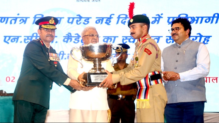 राज्यपाल श्री मंगुभाई पटेल ने लोकभवन के सांदीपनि सभागार में गणतंत्र दिवस 2026 की राष्ट्रीय परेड और विभिन्न प्रतियोगिताओं में पदक एवं उपलब्धियां प्राप्तकर्ता मध्यप्रदेश और छत्तीसगढ़ निदेशालय के एन.सी.सी. कैडेट्स को सम्मानित किया।