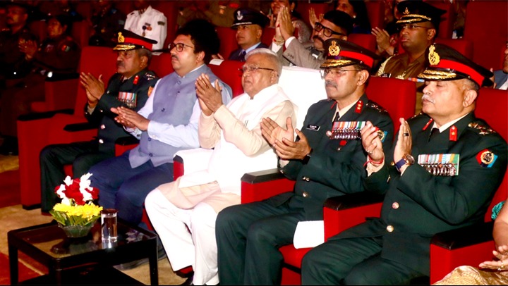 राज्यपाल श्री मंगुभाई पटेल के समक्ष एन.सी.सी. ऐट होम समारोह में कैडेट्स ने “ऐ मेरे भारत की नारी, तू है महान” से नारी की महानता और “नव भारतम्-श्रेष्ठ भारतम्” पर आधारित प्रस्तुति दी।