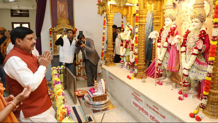 मुख्यमंत्री डॉ. मोहन यादव ने इंदौर के स्वामीनारायण अक्षरधाम मंदिर में पूजा अर्चना की।