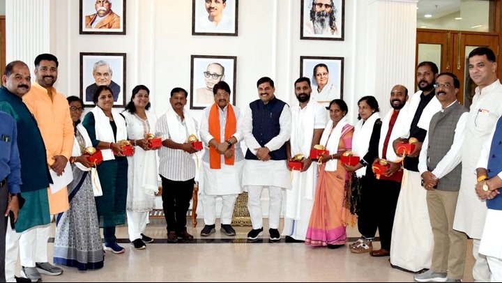 मुख्यमंत्री डॉ. मोहन यादव से शनिवार को मध्यप्रदेश भ्रमण पर केरल से आये जनप्रतिनिधियों के प्रतिनिधिमंडल ने सौजन्य भेंट की।