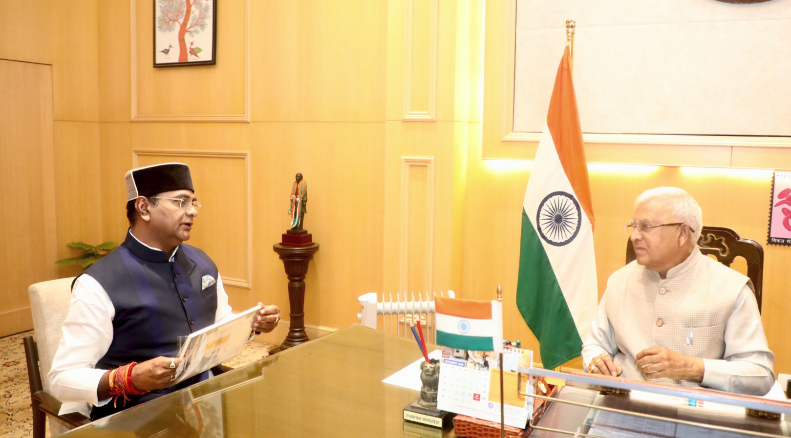 राज्यपाल श्री मंगुभाई पटेल से खेल एवं युवा कल्याण, सहकारिता मंत्री श्री विश्वास सारंग ने लोकभवन में सौजन्य भेंट की।