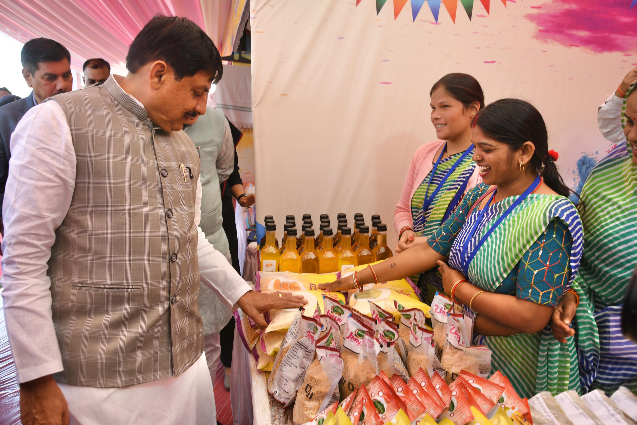 मुख्यमंत्री डॉ. मोहन यादव ने कुशाभाऊ ठाकरे सभागार में स्व-सहायता समूहों की आजीविका मिशन क्षमतावर्धन कार्यशाला में दीदियों के स्टॉल्स का अवलोकन किया।