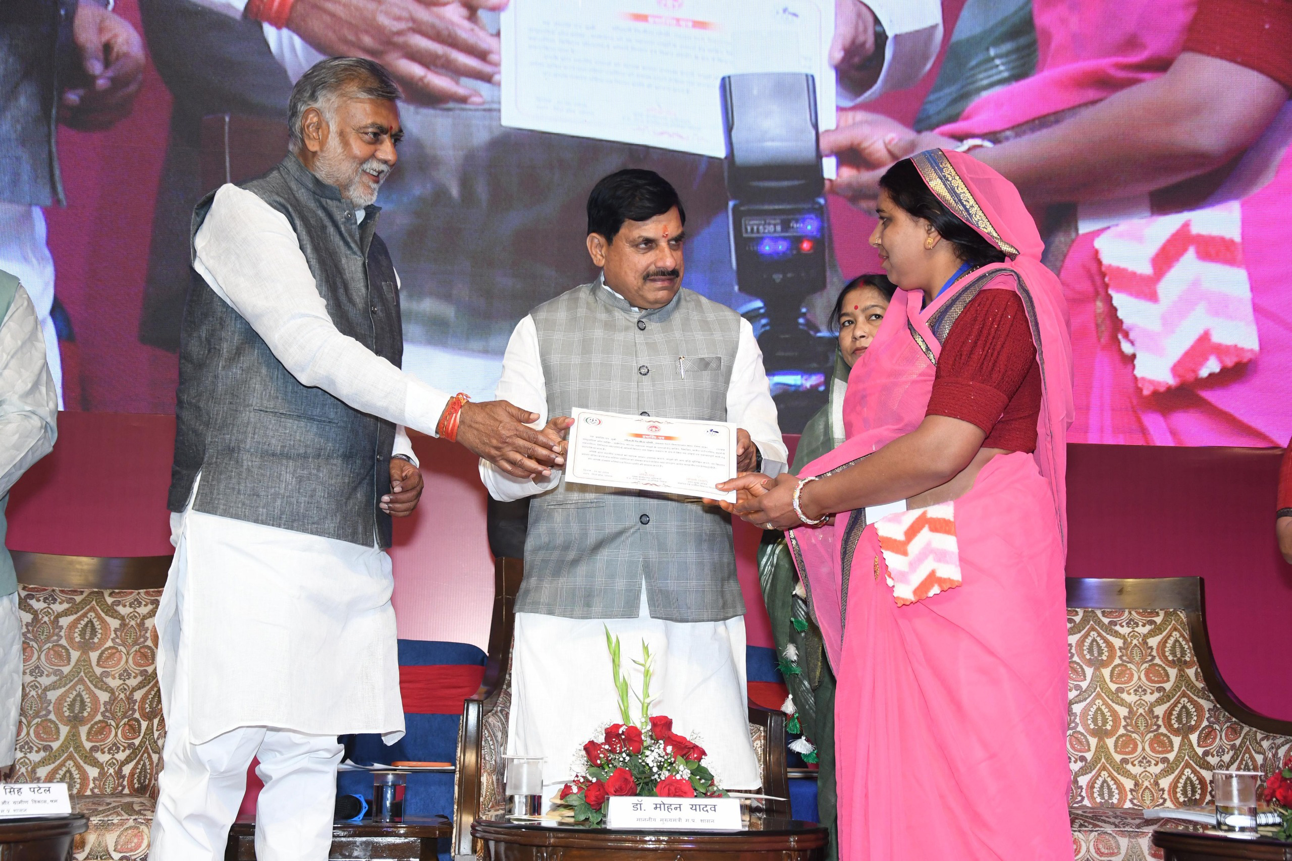 मुख्यमंत्री डॉ. मोहन यादव ने स्व-सहायता समूहों की आजीविका मिशन क्षमतावर्धन कार्यशाला में उत्कृष्ट कार्य करने वाले स्व सहायता समूह की दीदियों को प्रशस्ति पत्र प्रदान किए।