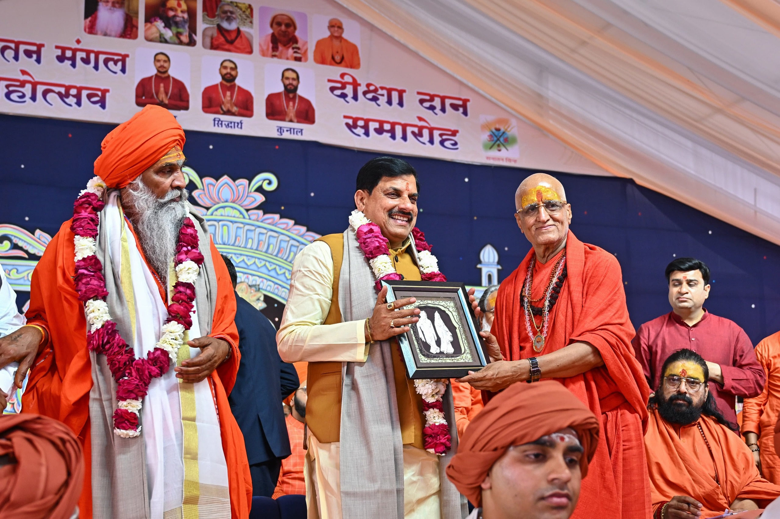 मुख्यमंत्री डॉ. मोहन यादव को भीलवाड़ा के हरिशेवा उदासीन आश्रम सनातन मंदिर में महामंडलेश्वर स्वामी हंसराम जी महाराज ने स्मृति चिन्ह भेंट किया।