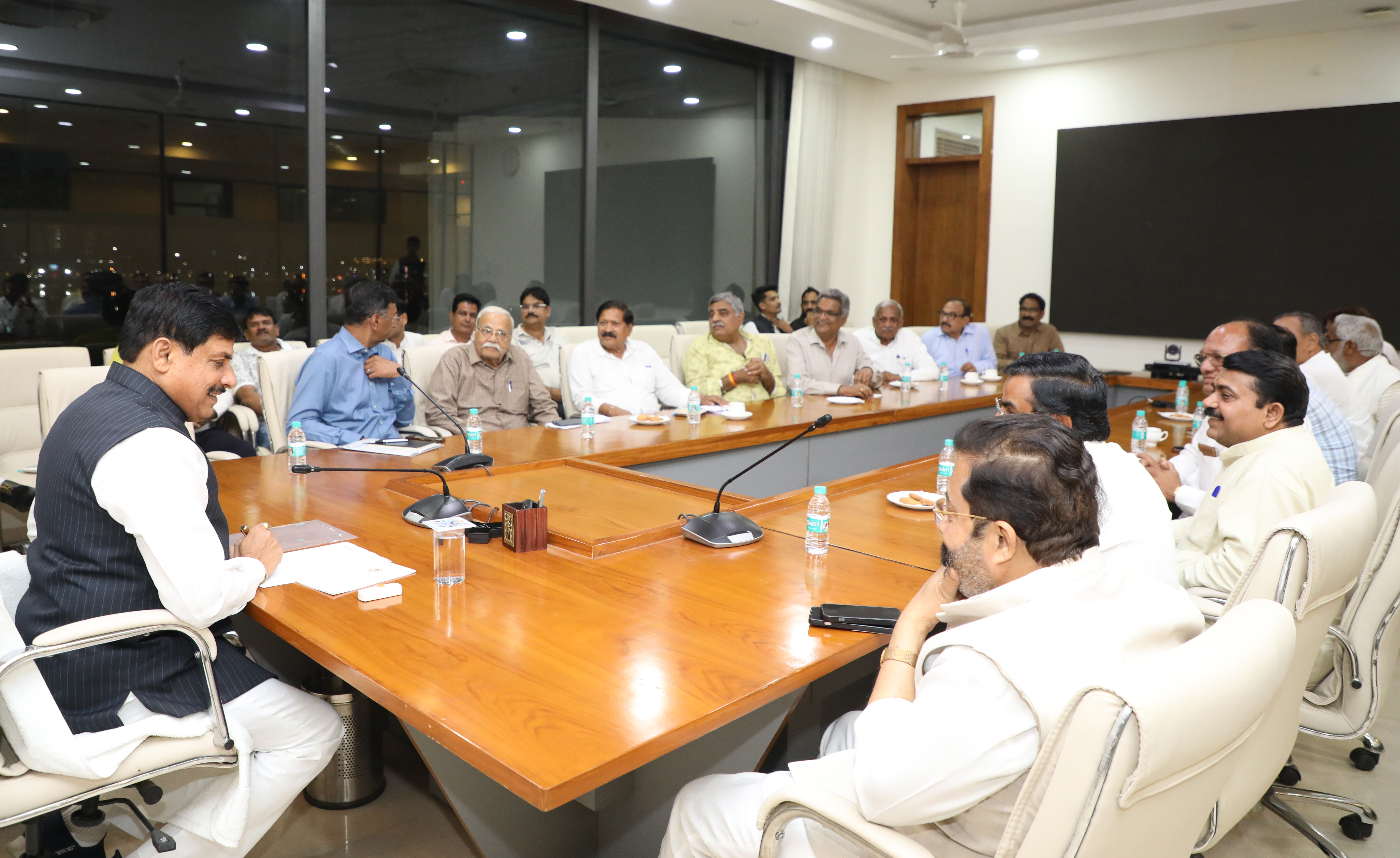 मुख्यमंत्री डॉ. मोहन यादव से मुख्यमंत्री निवास में म.प्र. बस ऑनर्स एसोसिएशन के प्रतिनिधियों ने भेंट कर प्रस्तावित बस हड़ताल वापस ली।
