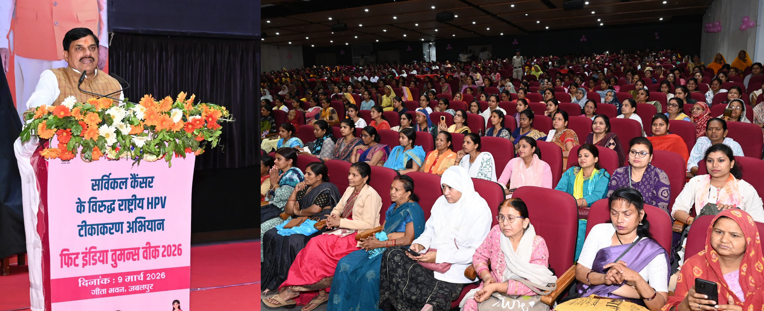 मुख्यमंत्री डॉ.मोहन यादव ने जबलपुर के गीता भवन में फिट इंडिया वुमन्स वीक-2026 अंतर्गत राष्ट्रीय HPV टीकाकरण अभियान के कार्यक्रम को संबोधित किया।
