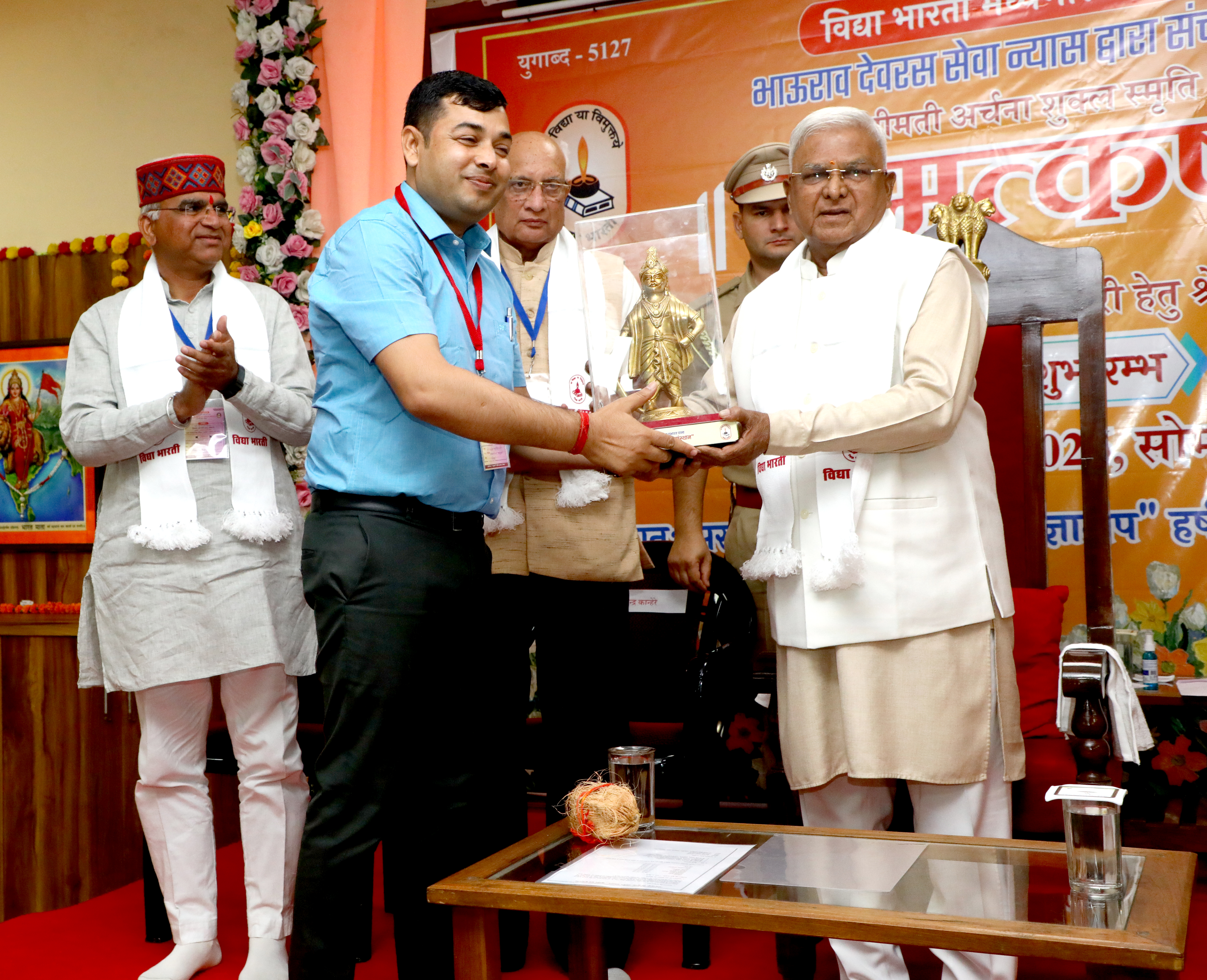 राज्यपाल श्री मंगुभाई पटेल का "समुत्कर्ष" नि:शुल्क कोचिंग संस्थान के द्वितीय सत्र के शुभारम्भ कार्यक्रम में स्मृति चिन्ह भेंट कर अभिनंदन किया।