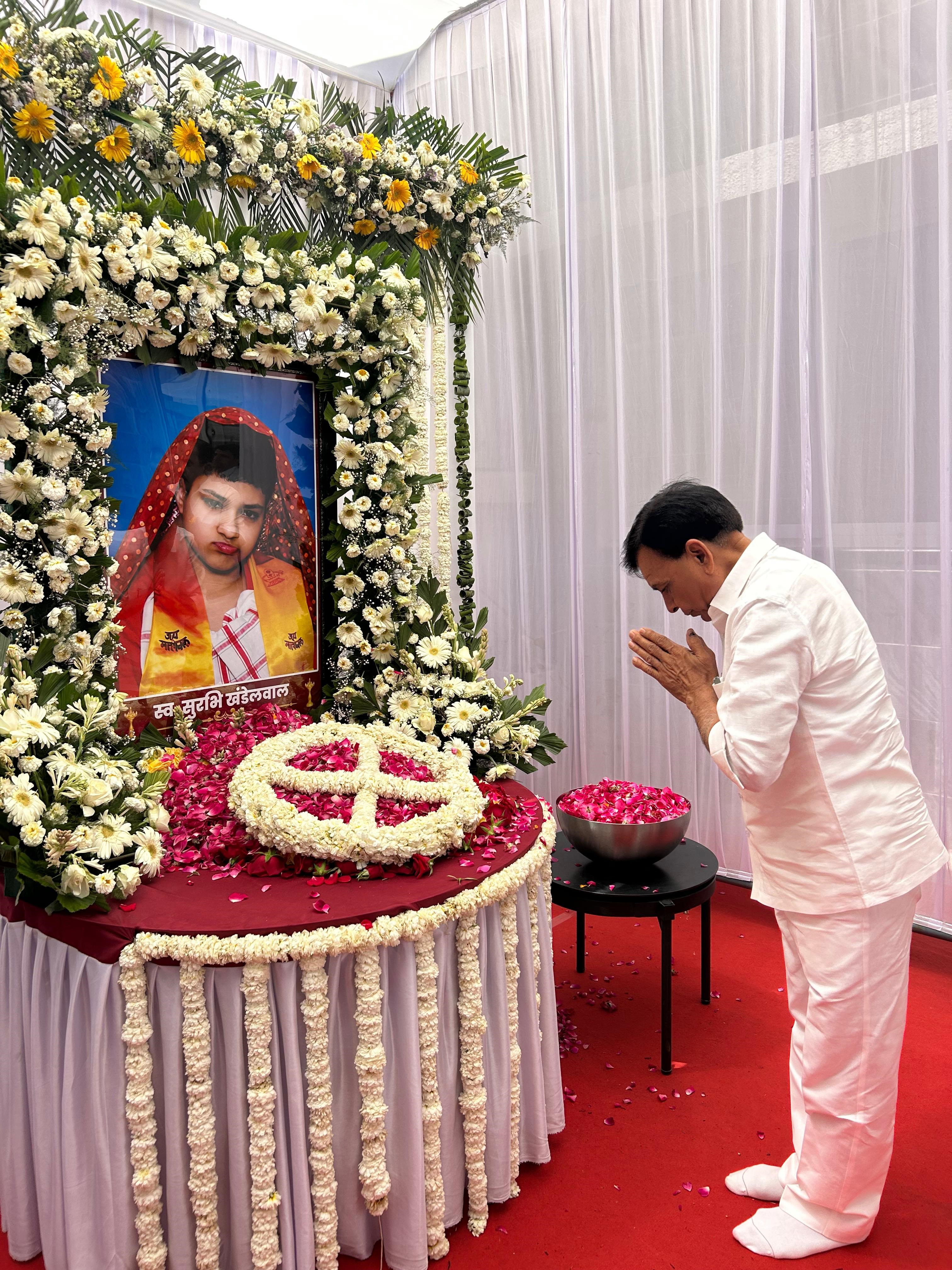 उप मुख्यमंत्री श्री जगदीश देवड़ा ने बैतुल में विधायक एवं प्रदेश अध्यक्ष श्री हेमंत खंडेलवाल की सुपुत्रि स्व. सुरभि खंडेलवाल के चित्र पर पुष्पांजलि अर्पित कर शोक संवेदना व्यक्त की।