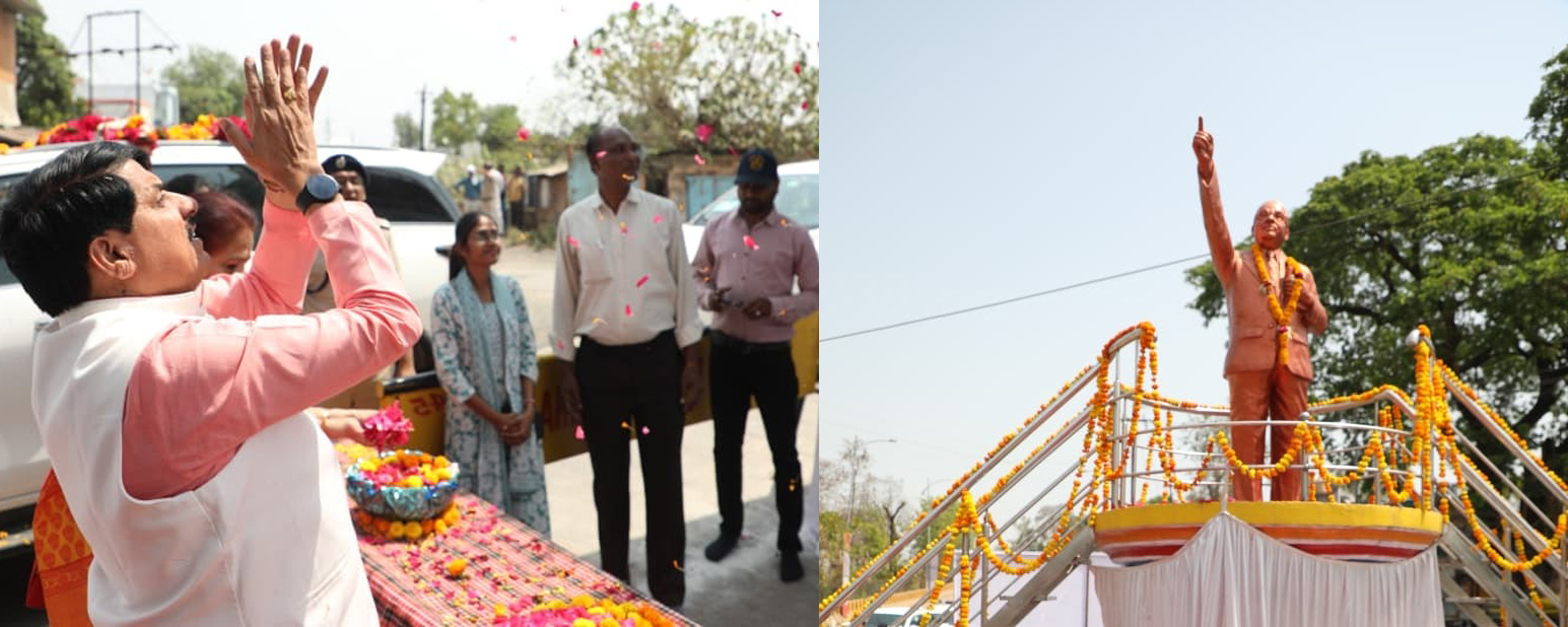 मुख्यमंत्री डॉ. मोहन यादव ने नेपानगर में अंबेडकर प्रतिमा पर पुष्पांजलि अर्पित की।