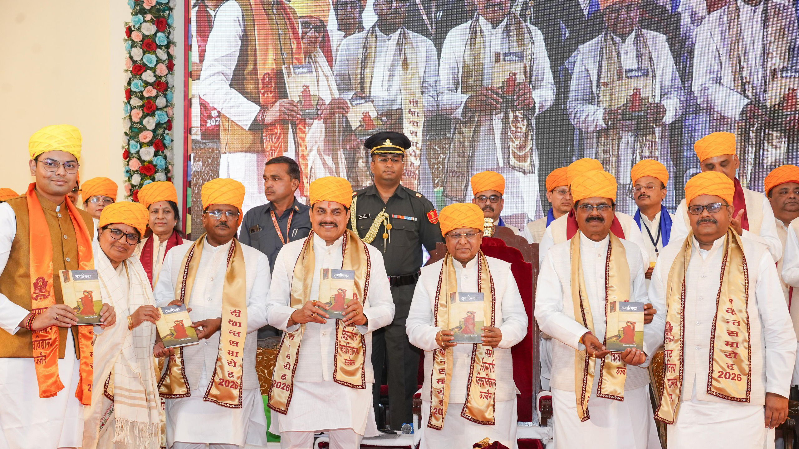 राज्यपाल श्री मंगुभाई पटेल और मुख्यमंत्री डॉ. मोहन यादव उज्जैन के सम्राट विक्रमादित्य विश्वविद्यालय के 30 वें दीक्षांत समारोह में पुस्तक रागात्मिका" का विमोचन किया।