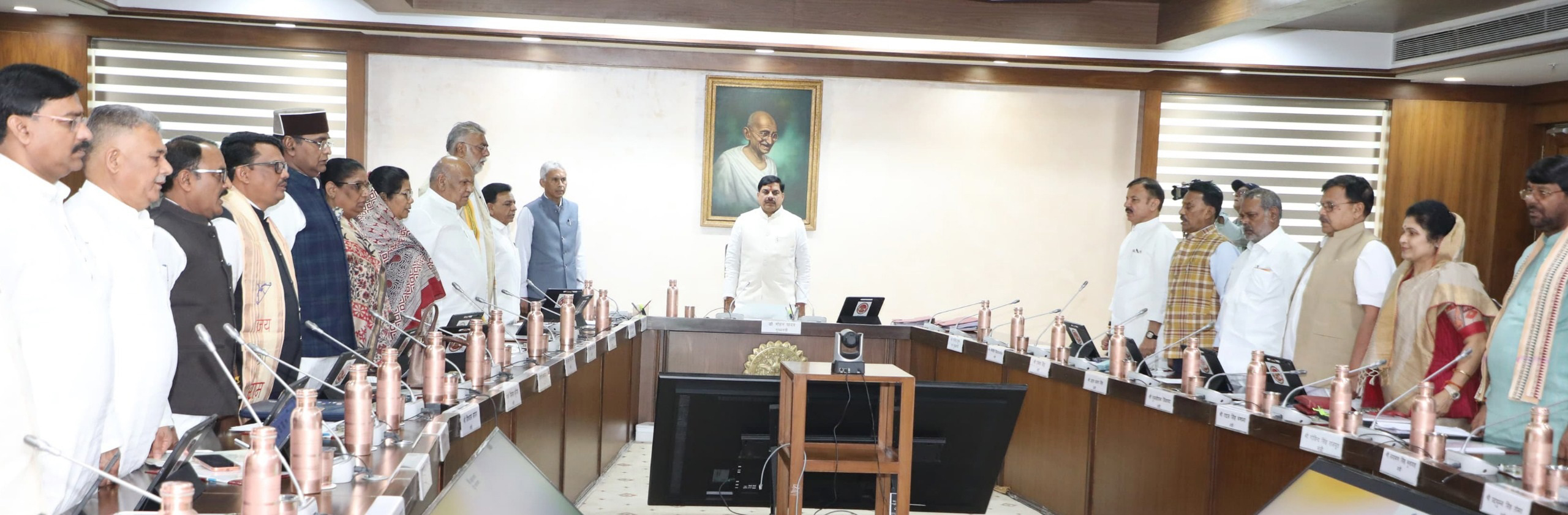 मुख्यमंत्री डॉ. मोहन यादव की अध्यक्षता में सोमवार को मंत्रालय में मंत्रि-परिषद् की बैठक वंदे मातरम् गायन के साथ आरंभ हुई।