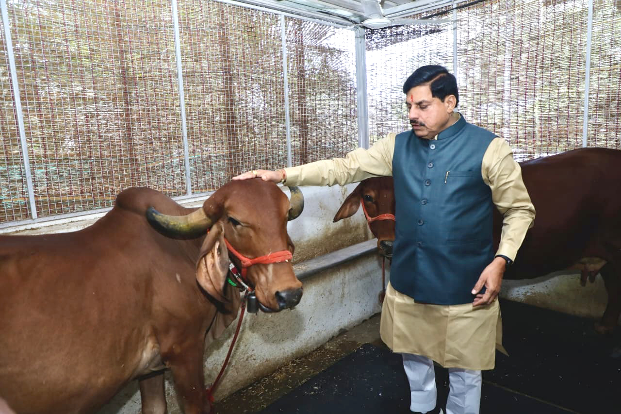 मुख्यमंत्री डॉ. मोहन यादव ने 25 मार्च की सुबह अपने जन्म दिवस पर गौ माता को ग्रास खिलाया और दुलार किया।