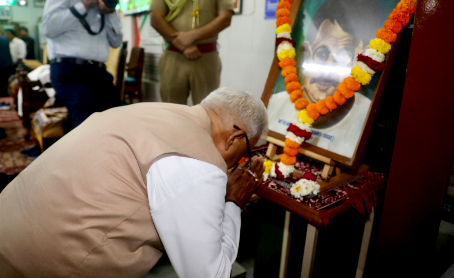 राज्यपाल श्री मंगुभाई पटेल ने माधवराव सप्रे स्मृति समाचार पत्र संग्रहालय एवं शोध संस्थान में हिन्दी पत्रकारिता के 200 वर्ष पूर्ण होने के अवसर पर आयोजित कार्यक्रम का शुभारंभ गणेश शंकर विद्यार्थी जी के छायाचित्र पर पुष्प अर्पण और नमन कर किया।
