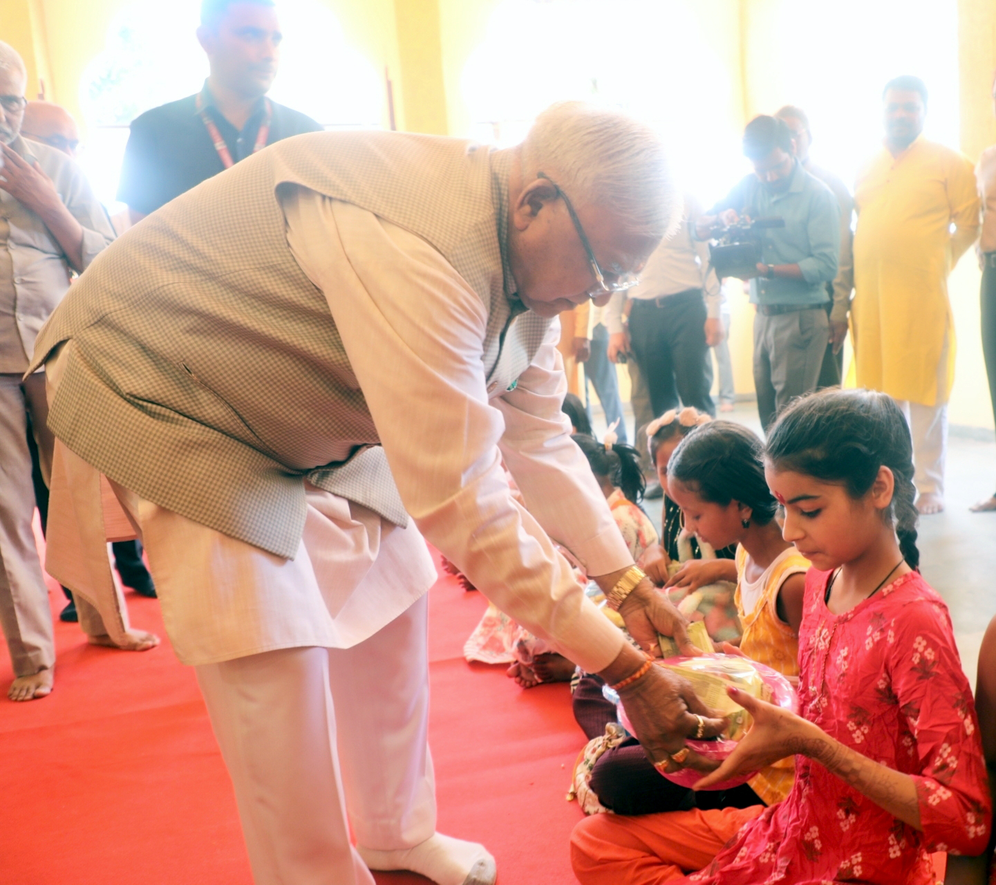राज्यपाल श्री मंगुभाई पटेल ने रामनवमी के पवन पर्व पर लोकभवन स्थित मंदिर में कन्या-पूजन कर कन्याओं को उपहार प्रदान किया।