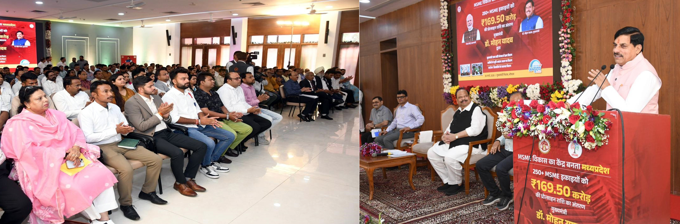 मुख्यमंत्री डॉ. मोहन यादव ने समर्थ एमएसएमई विकसित मध्यप्रदेश की थीम पर मुख्यमंत्री निवास में आयोजित कार्यक्रम को संबोधित किया।