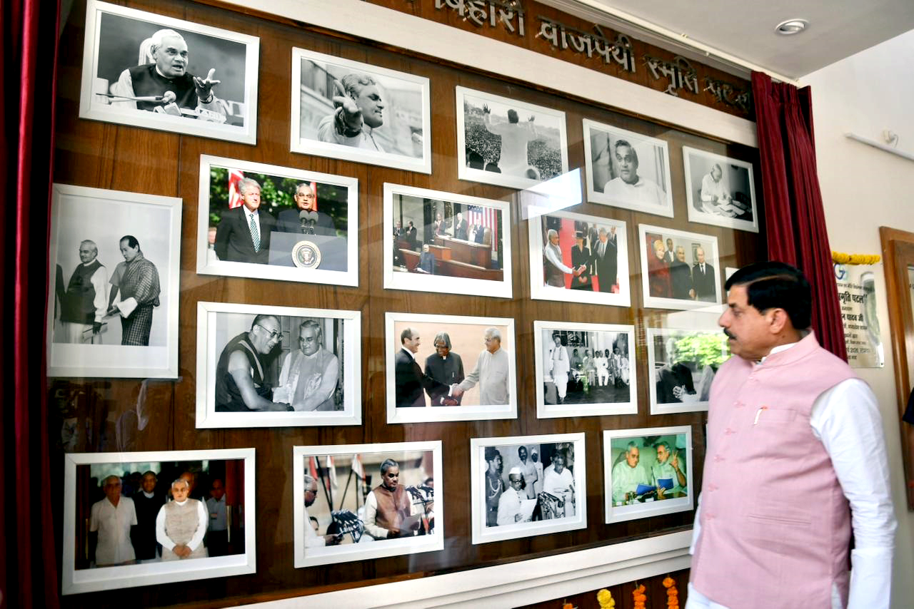 मुख्यमंत्री डॉ. मोहन यादव ने भारत रत्न सम्मानित पूर्व प्रधानमंत्री स्व. अटल बिहारी वाजपेई की स्मृति में सुशासन भवन में फोटो गैलरी का शुभारंभ किया।