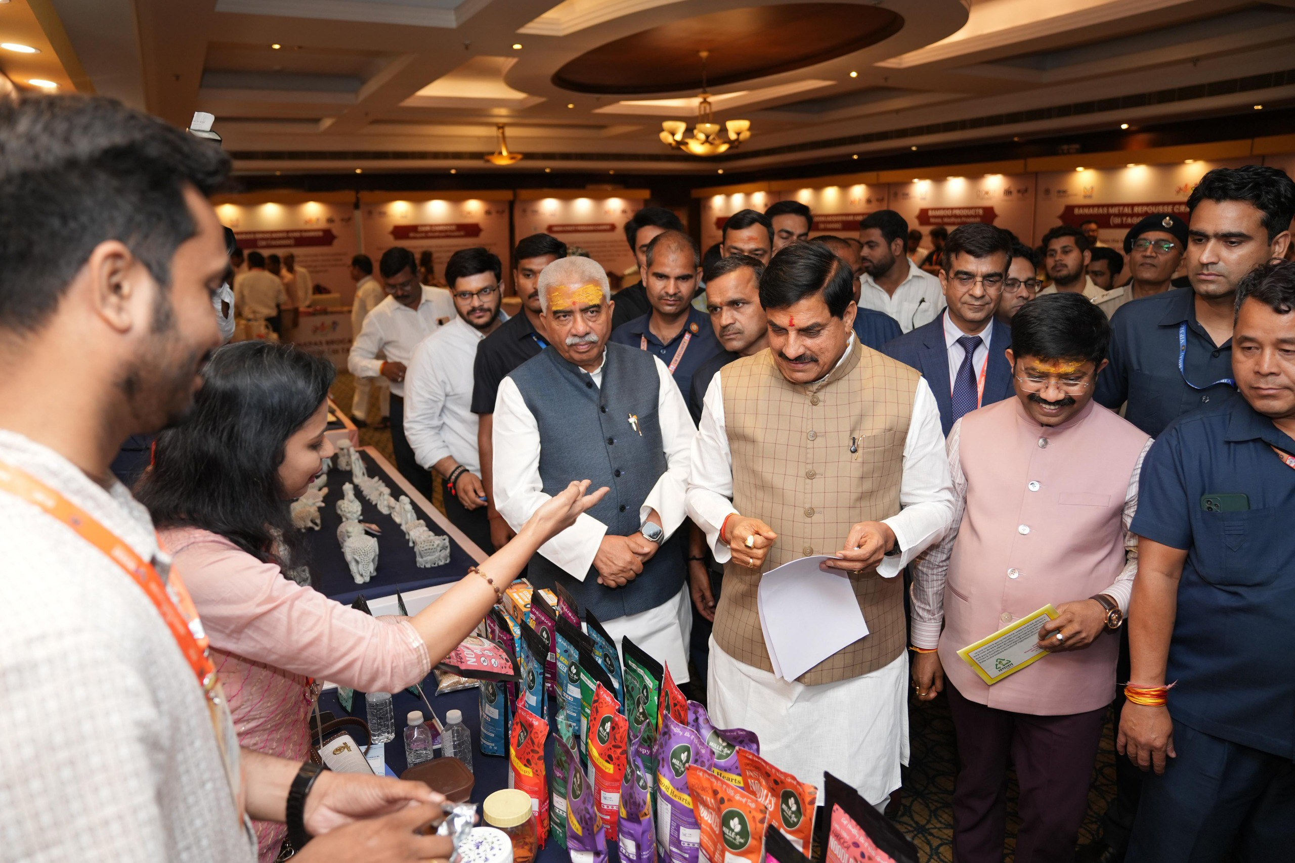 मुख्यमंत्री डॉ. मोहन यादव ने वाराणसी में मध्यप्रदेश - उत्तर प्रदेश सहयोग सम्मेलन : 2026 में ओडीओपी उत्पादों की प्रदर्शनी का अवलोकन किया।