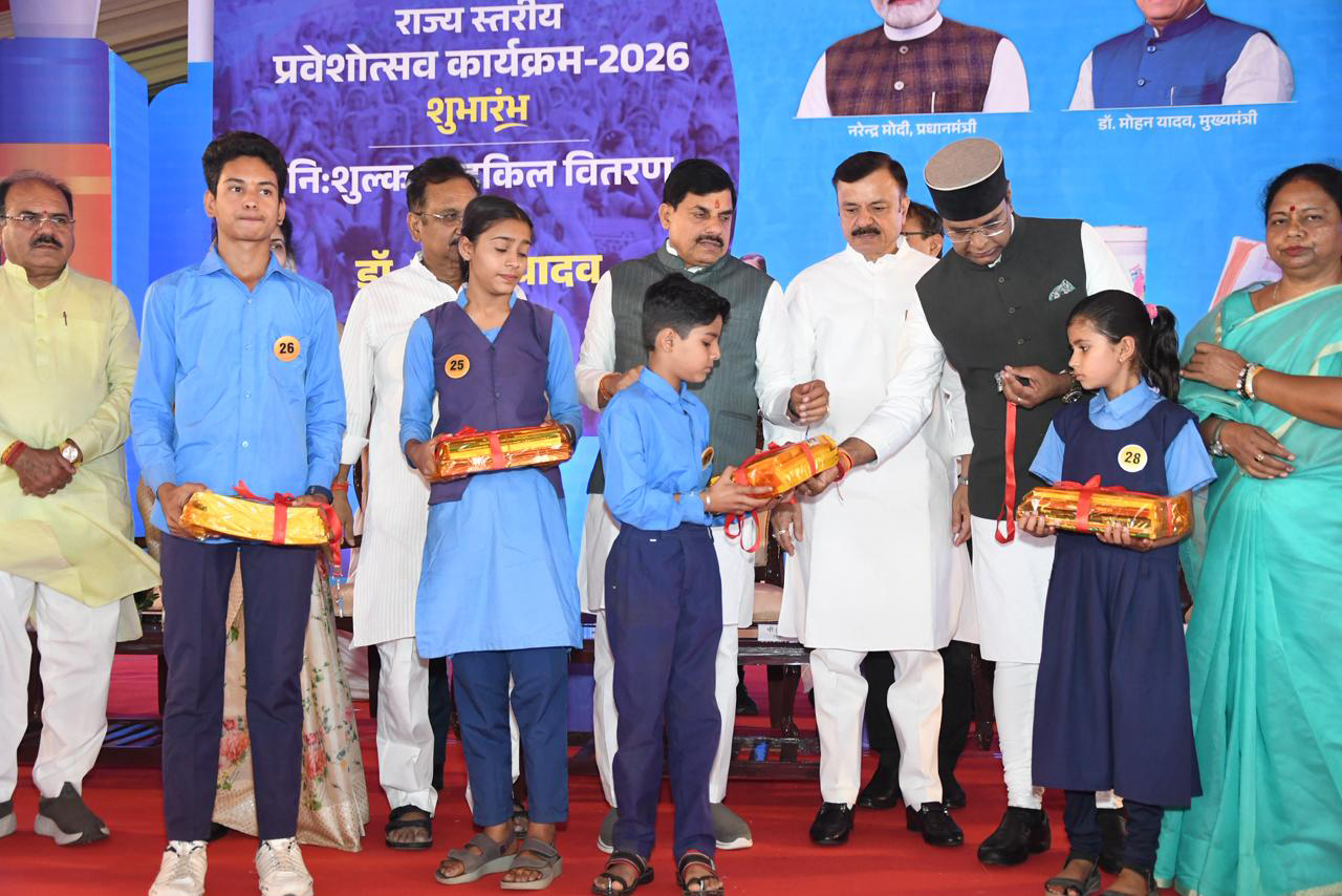 मुख्यमंत्री डॉ. मोहन यादव ने "स्कूल चले हम" अभियान अंतर्गत भोपाल में राज्य स्तरीय प्रवेशोत्सव कार्यक्रम-2026 के शुभारंभ अवसर पर स्कूली विद्यार्थियों को निशुल्क पुस्तकें वितरित की।