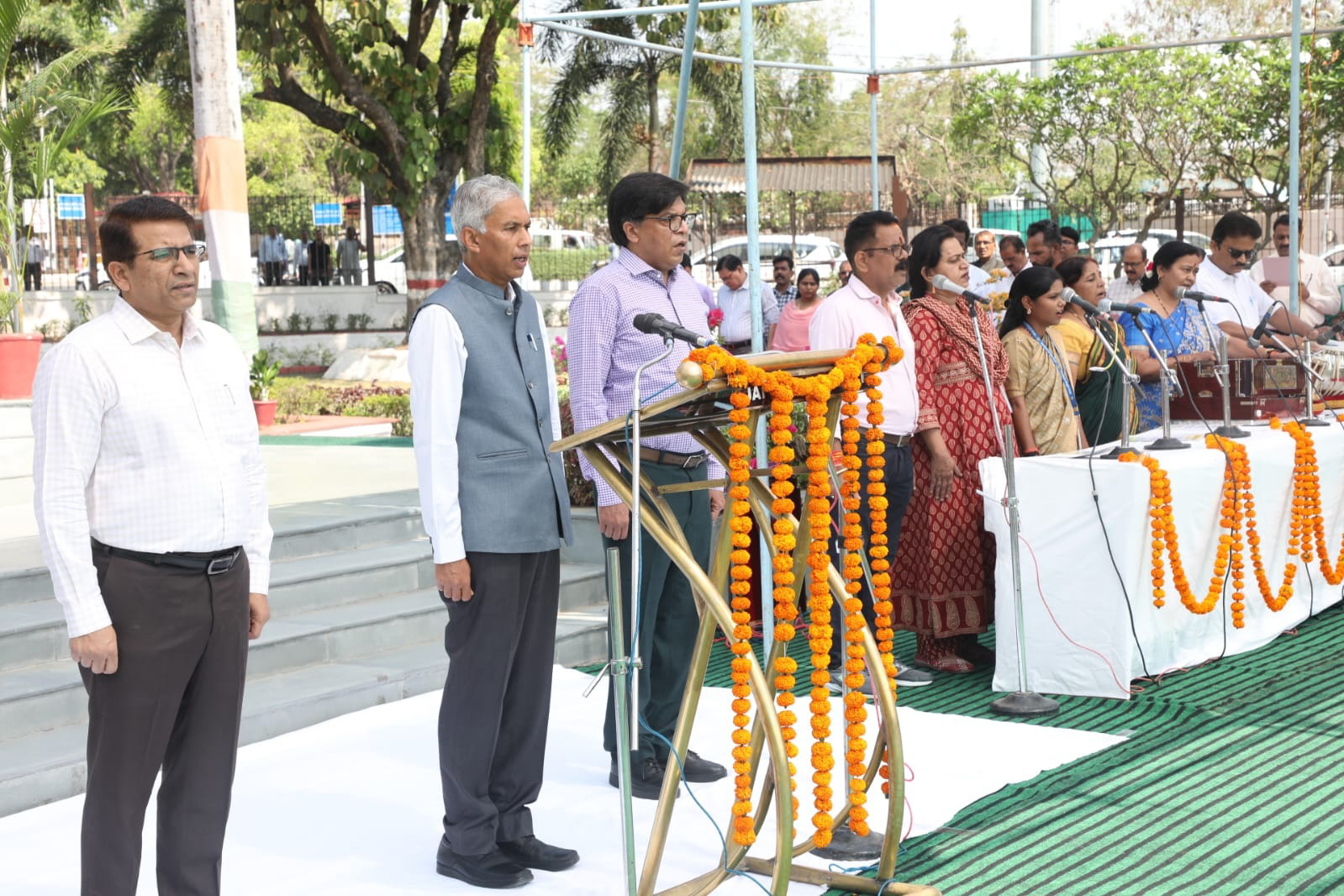 मुख्य सचिव श्री अनुराग जैन की उपस्थिति में माह के प्रथम दिवस मंत्रालय स्थित सरदार वल्लभ भाई पटेल उद्यान में वंदे मातरम और जनगणमन का सामुहिक गान हुआ।