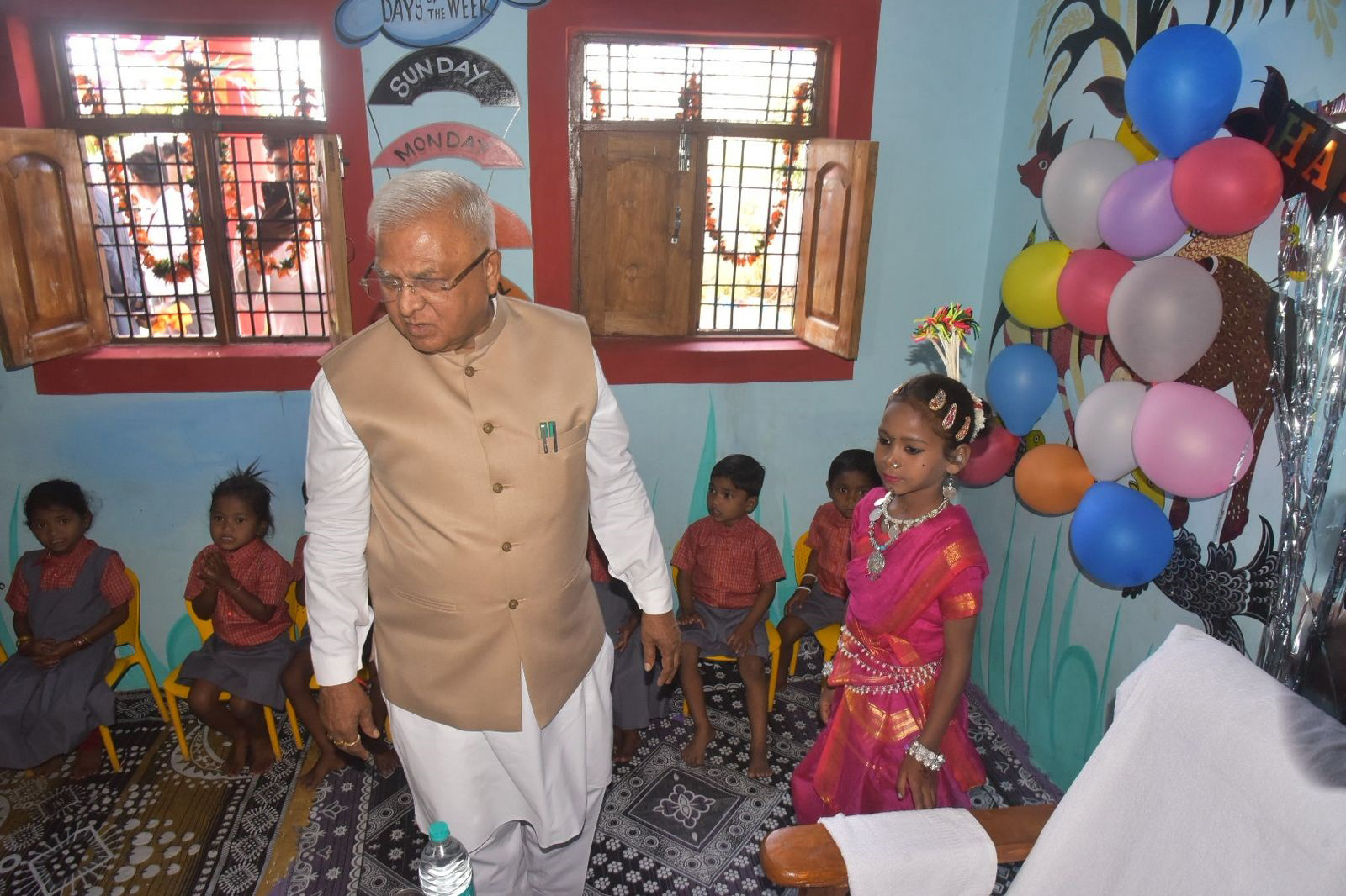राज्यपाल श्री मंगुभाई पटेल ने मण्डला जिले ग्राम कन्हारी कला के प्रधानमंत्री जनमन आँगनवाड़ी केन्द्र का अवलोकन कर बच्चों से आत्मीय संवाद किया।