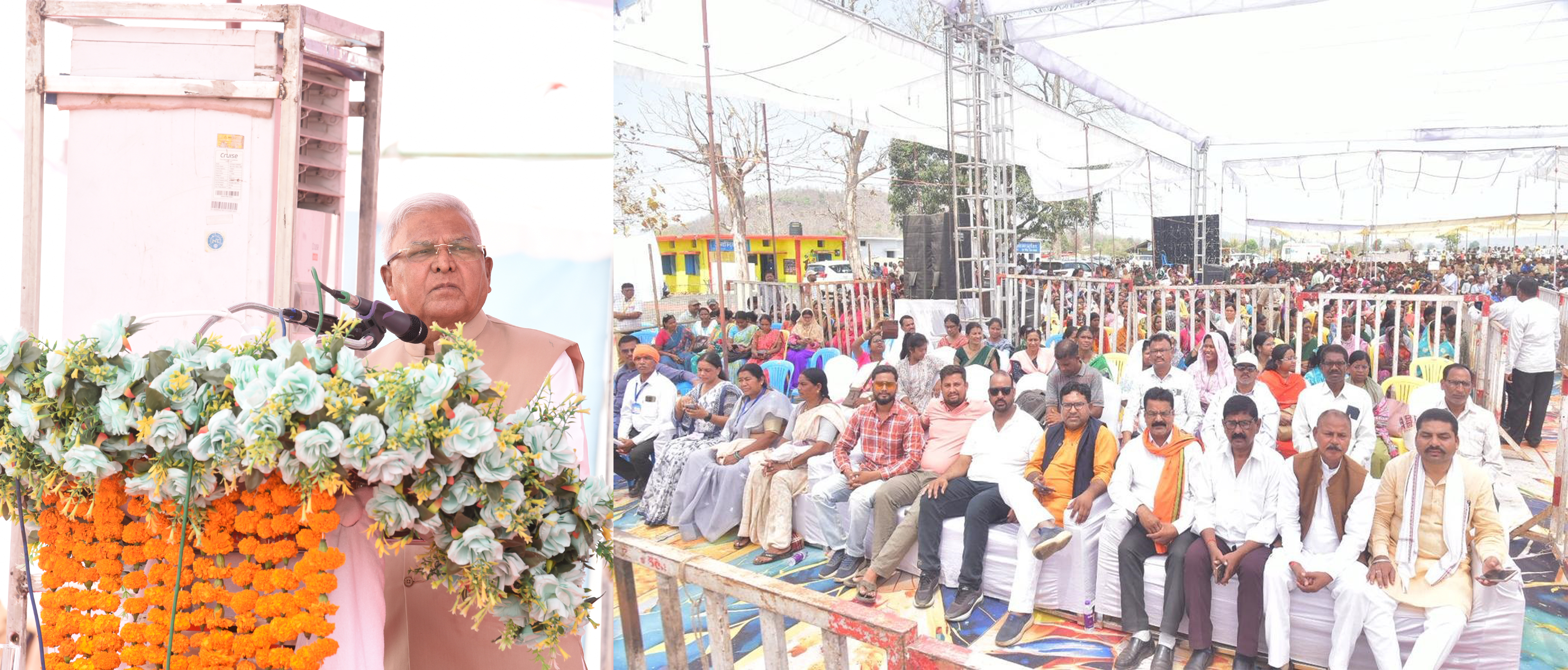 राज्यपाल श्री मंगुभाई पटेल ने मण्डला जिले ग्राम कन्हारी कला में मुख्यमंत्री दुधारू पशु प्रदाय योजना एवं सिकल सेल स्वास्थ्य शिविर को संबोधित किया।