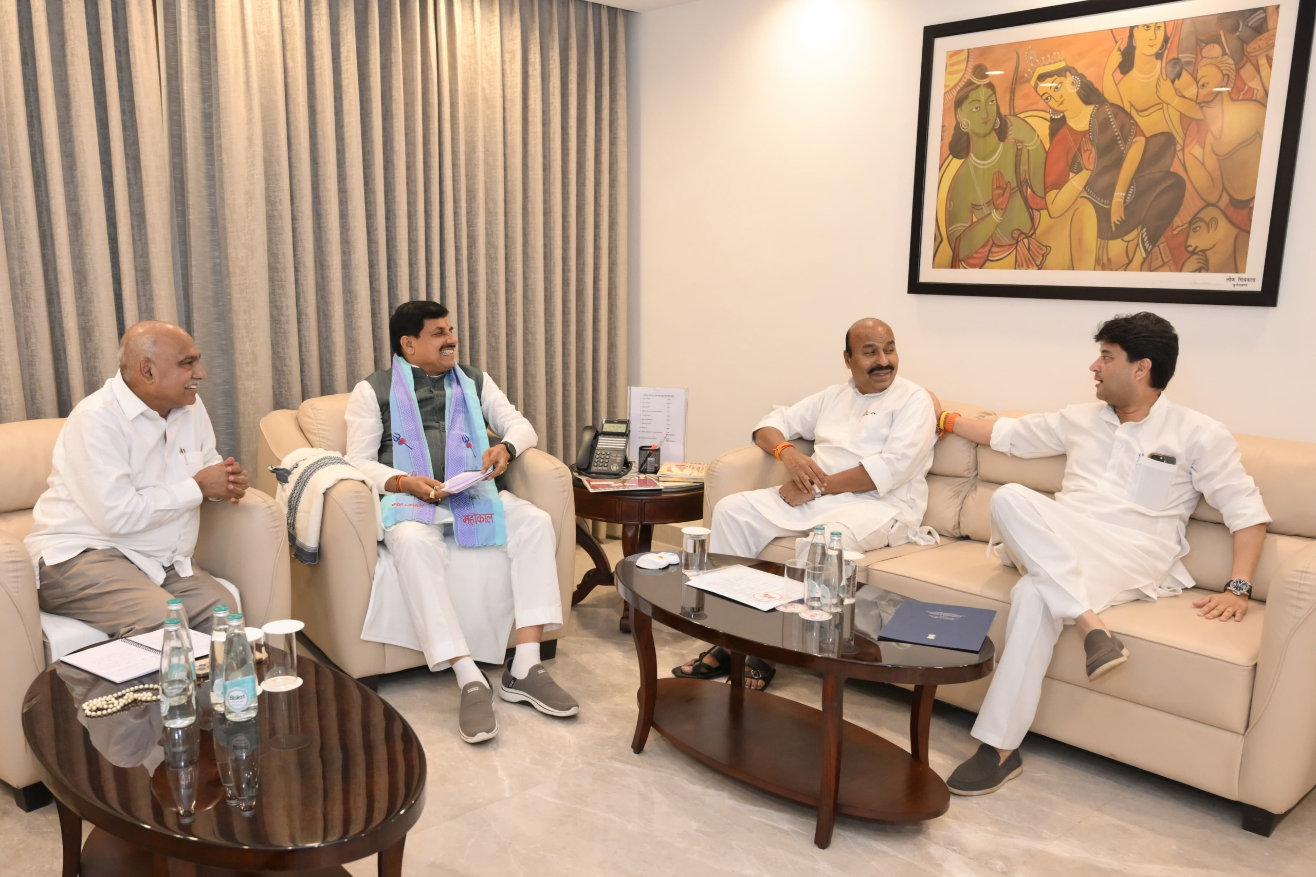 मुख्यमंत्री डॉ. मोहन यादव से केंद्रीय मंत्री श्री ज्योतिरादित्य सिंधिया एवं केंद्रीय मंत्री श्री वीरेंद्र खटीक ने नई दिल्ली स्थित मध्यप्रदेश भवन में मुलाकात की।