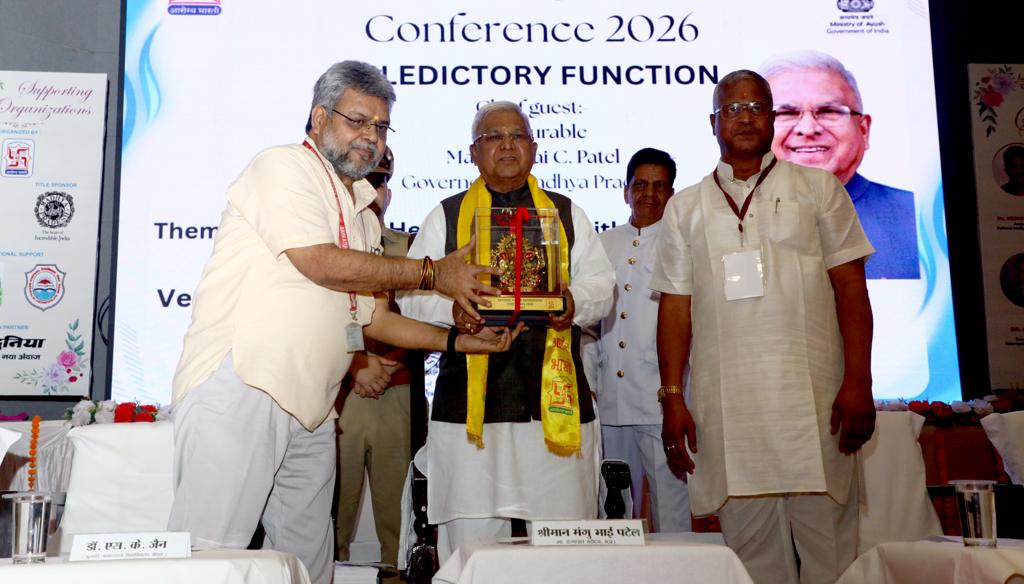 राज्यपाल श्री मंगुभाई पटेल का बरकतउल्ला विश्वविद्यालय के ज्ञान-विज्ञान सभागार में आरोग्य भारती द्वारा आयोजित प्राकृतिक चिकित्सा कार्यशाला में स्मृति चिन्ह भेंट कर अभिनंदन किया गया।
