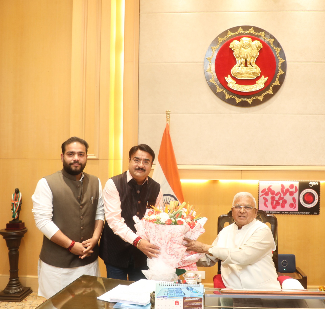 राज्यपाल श्री मंगुभाई पटेल से लोक स्वास्थ्य एवं चिकित्सा ‍शिक्षा राज्यमंत्री श्री नरेन्द्र शिवाजी पटेल ने आज लोकभवन में सौजन्य भेंट की।