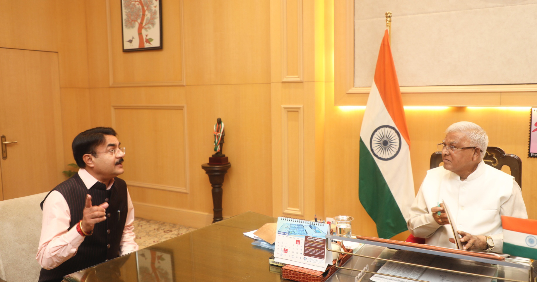 राज्यपाल श्री मंगुभाई पटेल से लोक स्वास्थ्य एवं चिकित्सा शिक्षा राज्यमंत्री श्री नरेन्द्र शिवाजी पटेल ने आज लोकभवन में सौजन्य भेंट की।
